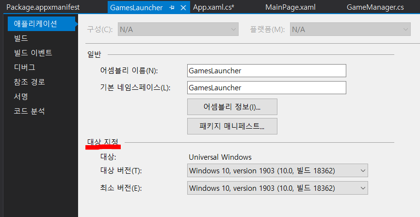 이는 UWP 에서는 프레임워크를 설정하는것이아니라