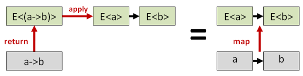 M은 A를 감싸는 타입이라고 생각하면 되고 파랑색으로 표현된 부분은 함수의 형태라고 보면된다.