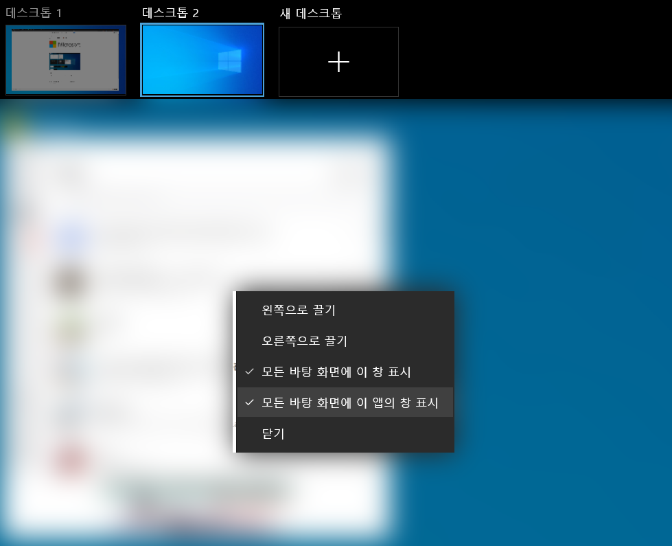 그냥 가상데스크탑 보기에서 앱별로 우클릭하면 설정이 가능하다.