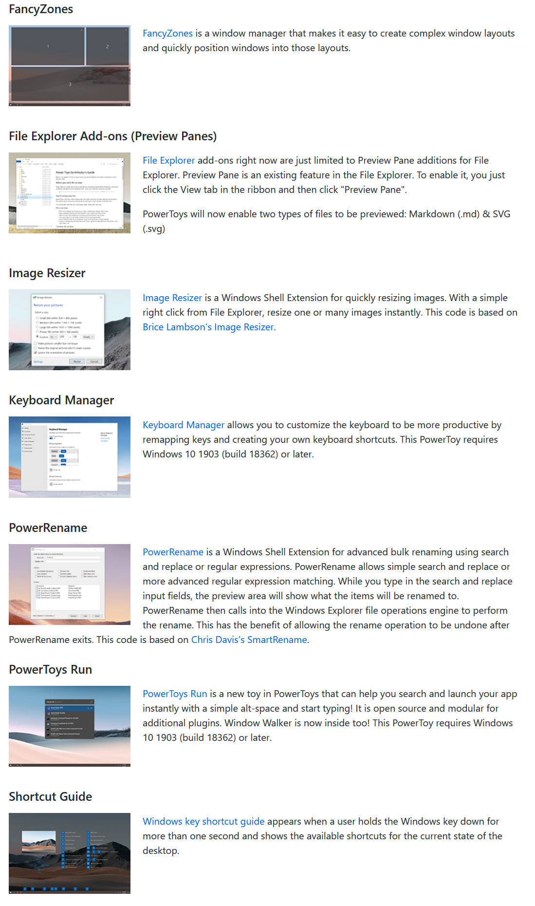 Windows 10에서도 그런 개념을 계승하여 이름도 똑같은 Powertoy 라는것을 개발중이다.