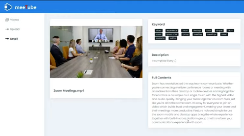 Post 코로나 시대에 , 원격 Meeting 이 늘고있는 것에 아이디어를 얻어, 해당 Meeting 을 녹화 하여 업로드하면, AI 로 Tag, 요약정보 등을 추출하여 관리할수있는 프로젝트를 구상하였다.