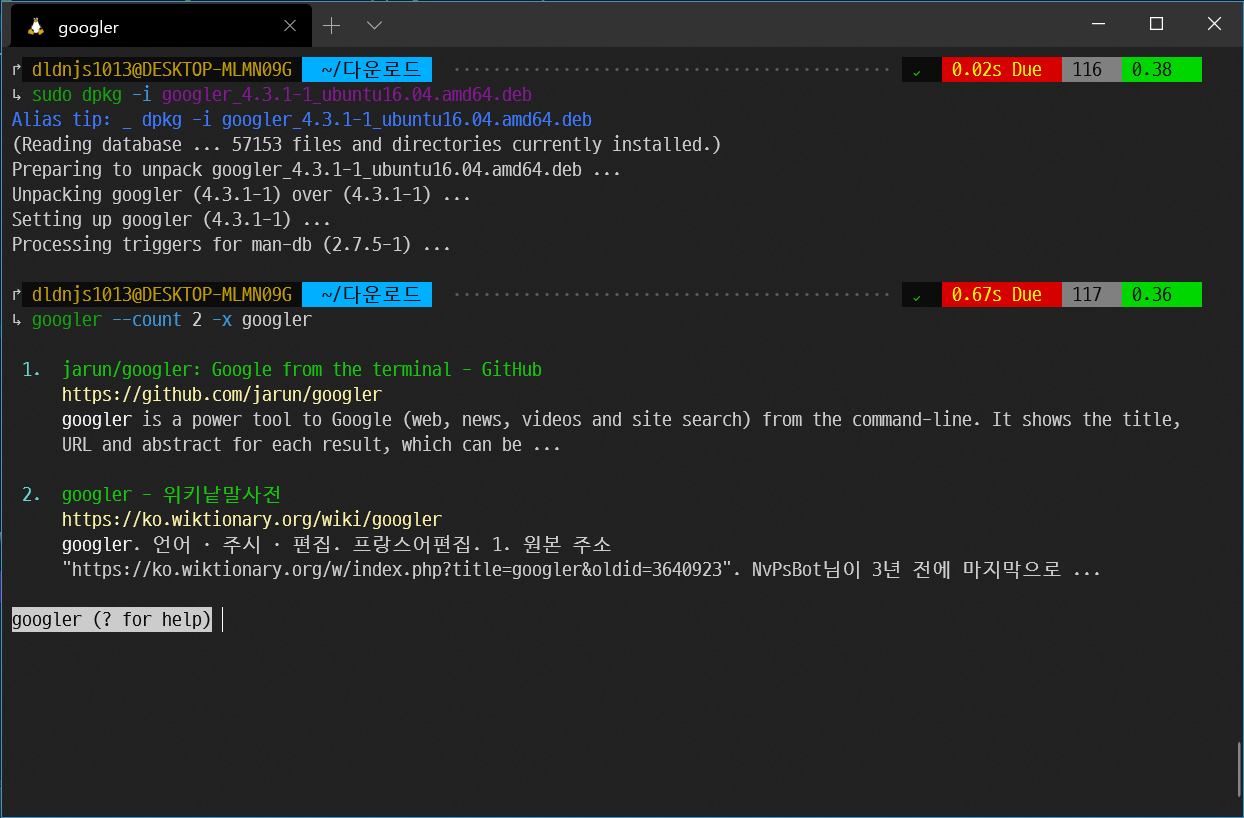 말 그대로 터미널에서 구글검색을 하게 해주는 프로그램