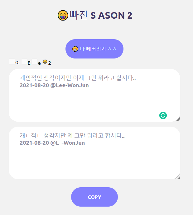 | "이" 만 쏙쏙 골라 빼주는 사이트 [이빠진/E-ppa-jin] (1) | 2021.05.25 |