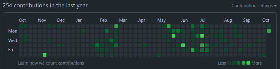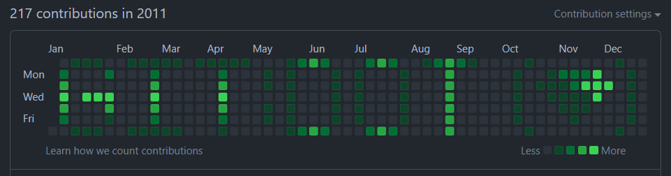 다만 git은 기본적으로 local 에서도 돌아가도록 설계되어있으므로 Commit 의 시간은 진짜 commit id 의 time 을 따라가게 된다. 즉 Local 에서 Commit Time 을 변경하고 Push 하면 그 변경된 Time 에 잔디가 심어지는 것이다.