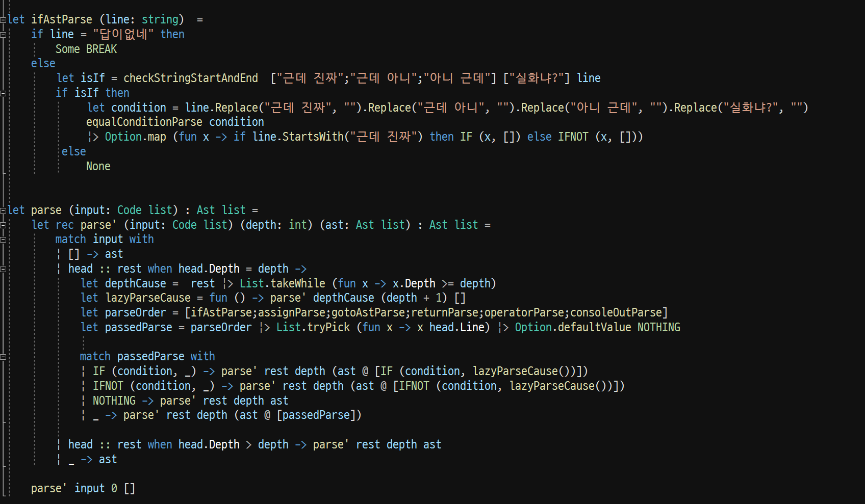 파서함수도 재귀함수로도는데, If 문처럼 Depth 를 제어하기위하여 세상 비효율적인 로직으로 파싱한다,