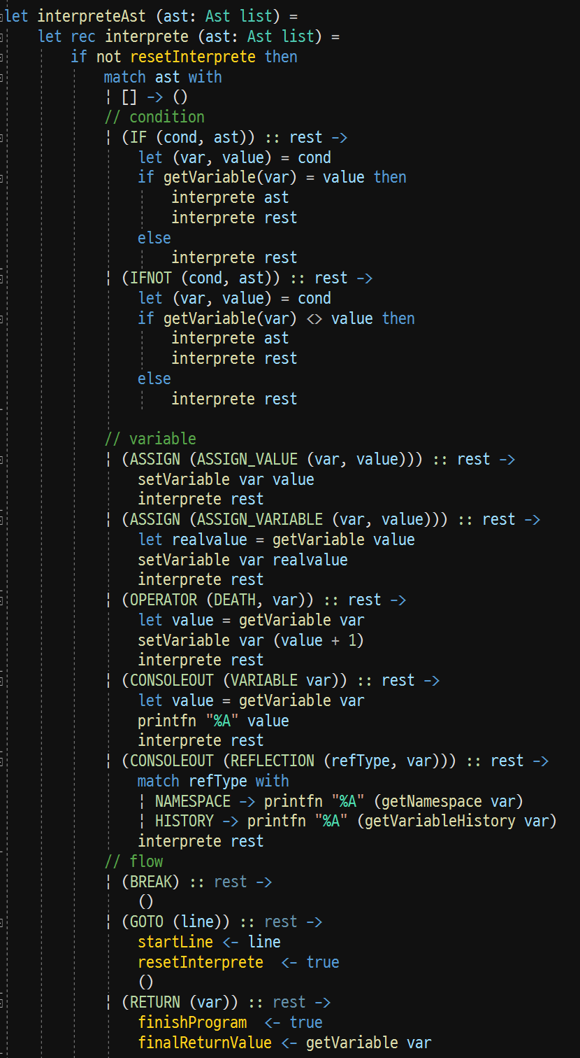 IF 문 (Depth) 이나 GOTO 에대한 AST / Interpreter 처리를 좀 고민했는데, 그냥 생각나는대로 고쳐가면서 짯다