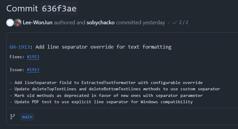 ExtractedTextFormatter 라는 친구가 이름을 보아하니, PDF 전용도 아닌것 같고 기존에 Case 는 동일하게 동작해야 하는 "하위 호환성" 관련 측면에서 그냥 박아버리면 안될것 같다고 생각했다.