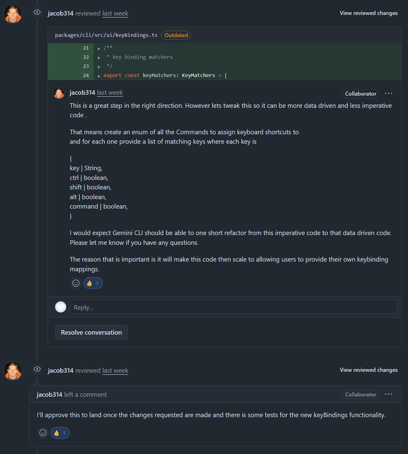 이게.. gemini-cli 가 상당히... 참여가 활발한 레포지토리라, 메인테이너가 내 PR 만 보는게 아니고 여러개를 많이 보니까, 매번 메인테이너가 내 PR을 보기전에 무엇인가 머지되고.. 그러니까 볼때마다 충돌이 나있고.. 나랑 일하는 시간대가 다르다 보니까.. 내가 충돌을 해결하고 태그를 해줘도, 메인테이너가 볼때면 또 깨져있는 죽음의 컨플릭트 스파이럴 발생..