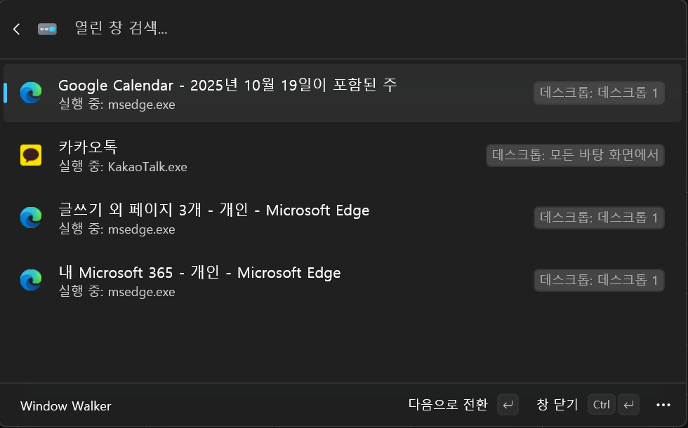 아무튼.. Cmd Pal 의 기본 기능들중에는, 앱을 찾아서 키는것, 그리고 열려있는 앱을 빠르게 찾고 전환하는것 (== WindowWalker) 기능이 포함되어있는데,
