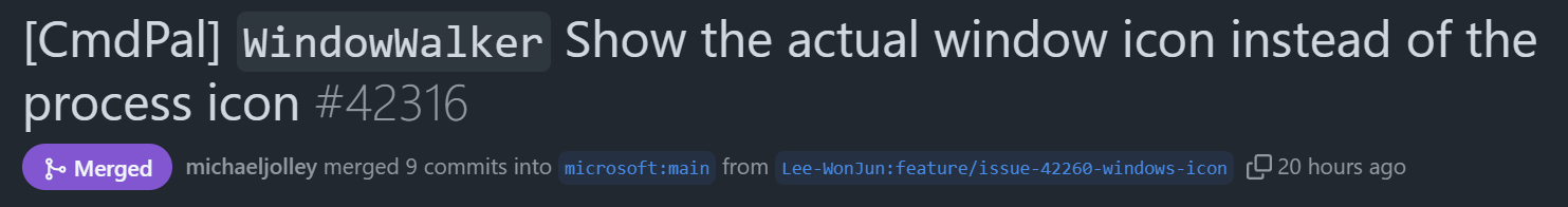 [CmdPal] `WindowWalker` Show the actual window icon instead of the process icon by Lee-WonJun · Pull Request #42316 · microsof